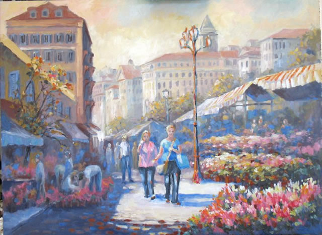 • Ivy Ridge Studio: Flower Market in Nice France 24 x 36 in Oil